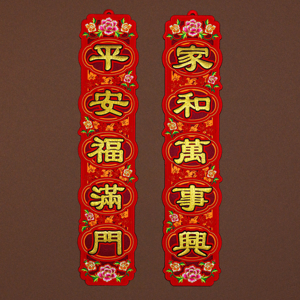 家和万事兴;平安福满门 (When the home is harmonious, all goes well; peace and blessings fill every door)
