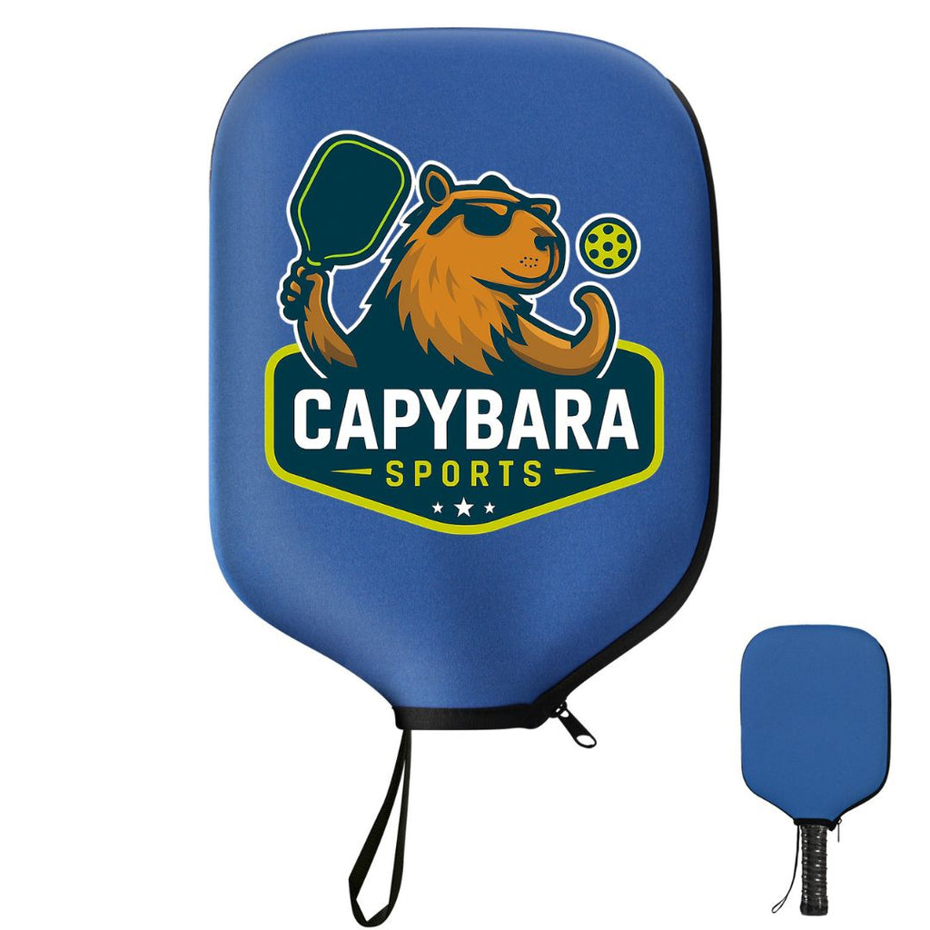 Bring some wild style to the court! This bold blue paddle cover features a cool capybara mascot in sunglasses with the words “Capybara Sports.” A playful yet powerful design for players who stand out.